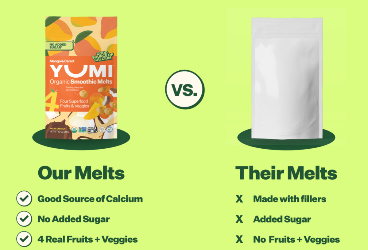 Zero Sugar. Zero Rice. Totally Delicious. YUMI Puffs contain +8 superfood veggies and are a good source of 3 essential nutrients. They’re an excellent source of calcium and choline, two nutrients crucial for childhood growth and development. Give your child a nutritional advantage with snacks formulated with their development in mind.