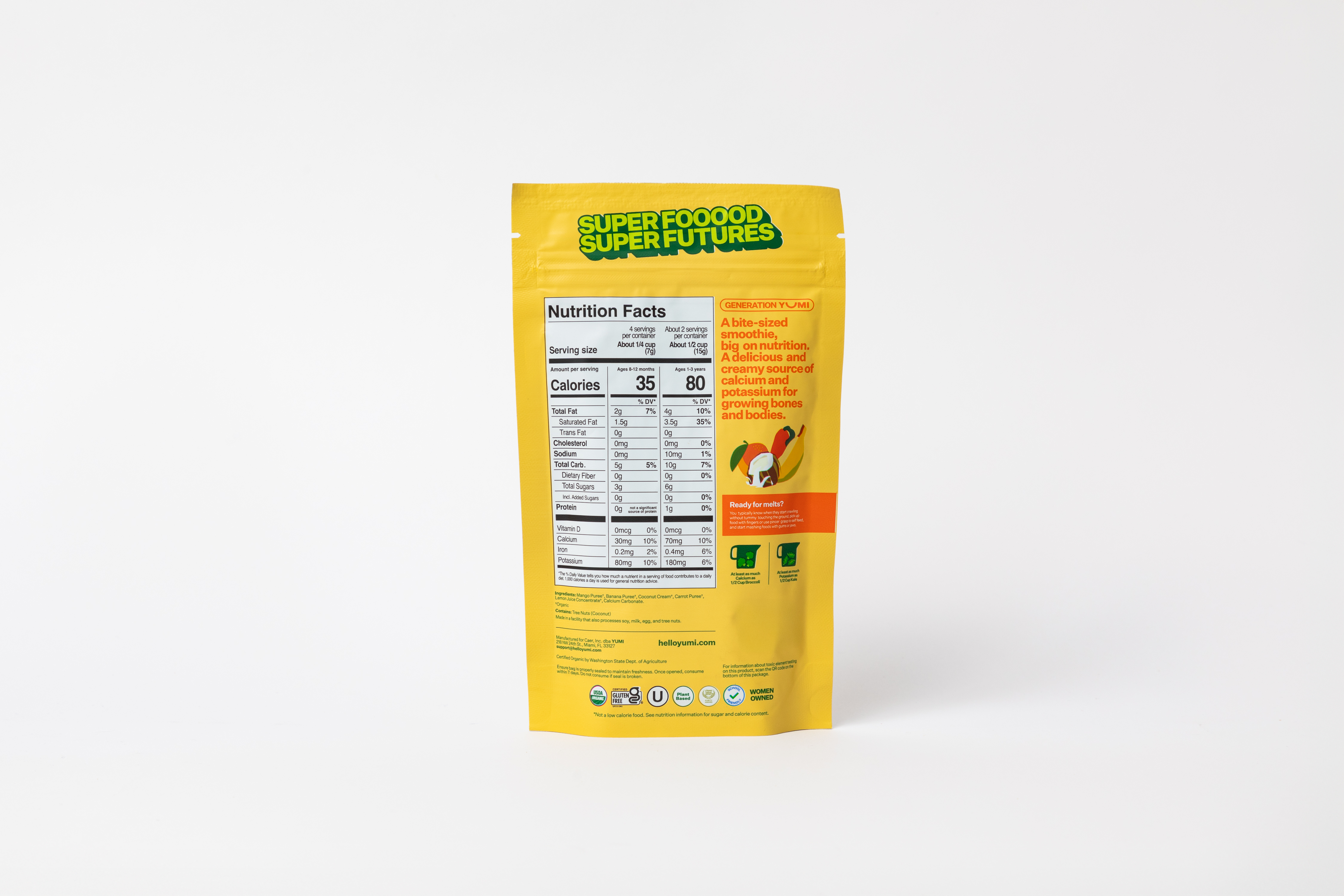 This is a 6 bundle of YUMI Smoothie Melts. Our picky eater approved YUMI Smoothie Melts are designed for your toddler’s development. These organic melts are sweetened only with fruit and made with 4 superfood fruits and veggies.